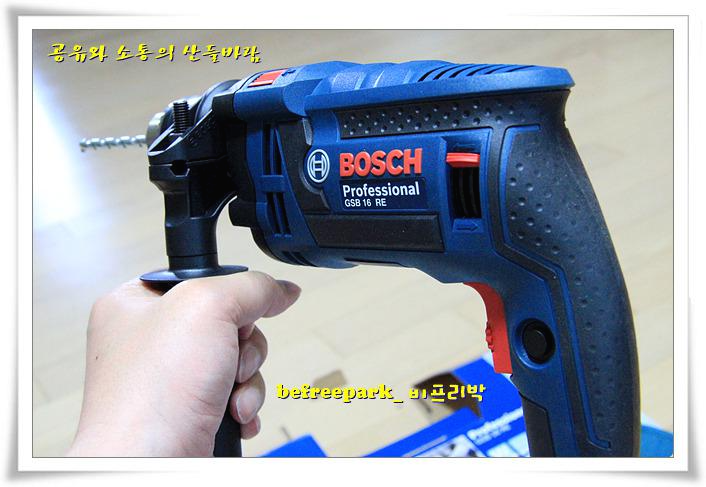 이 제품 GSB16RE 전동 드릴은 재충전용 배터리가 있는 제품에 비해서 상대적으로 무겁다. 하지만 강력하다! 출력이 상대적으로 높아서 콘크리트라든가 금속성 물질에도 구멍을 내거나 나사를 박을 수 있다. 드릴의 회전 속도와 강도를 조절할 수도 있다. 드릴의 진동을 잡아주기 위한 사이드 핸들을 장착해서 사용할 수도 있다. 개인적으로, 처음부터 이 제품을 사서 썼더라면, 하는 아쉬움이 있을 정도다. 그만큼 이 제품 bosch GSB16RE에 만족한다.