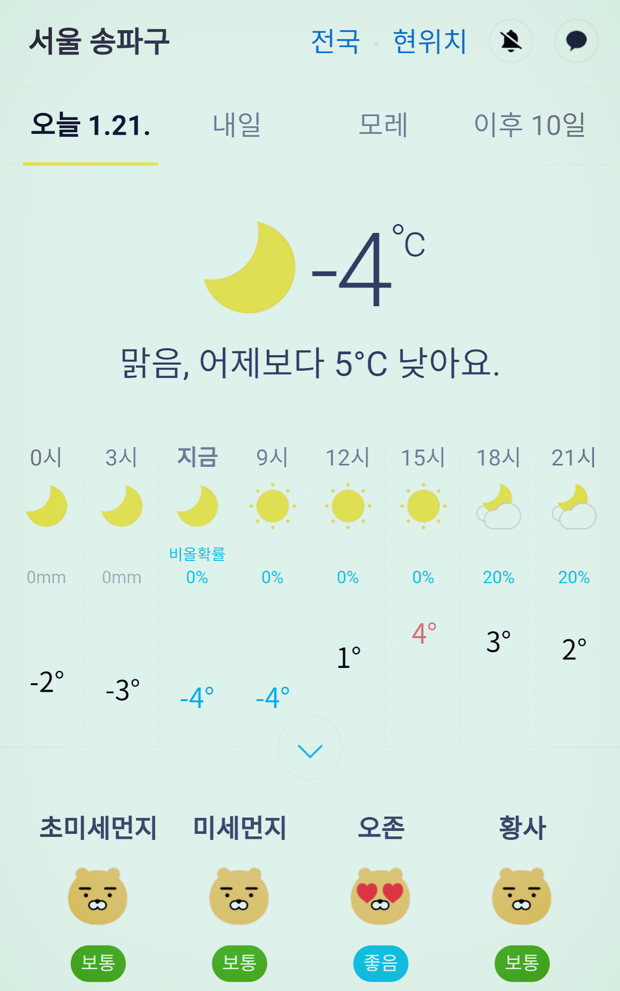 | 서울 강남 송파구 날씨 2020년 1월 20일. 서울 강남구 오늘의 날씨, 오늘 날씨, 초미세먼지, 미세먼지. (0) | 2020.01.20 |