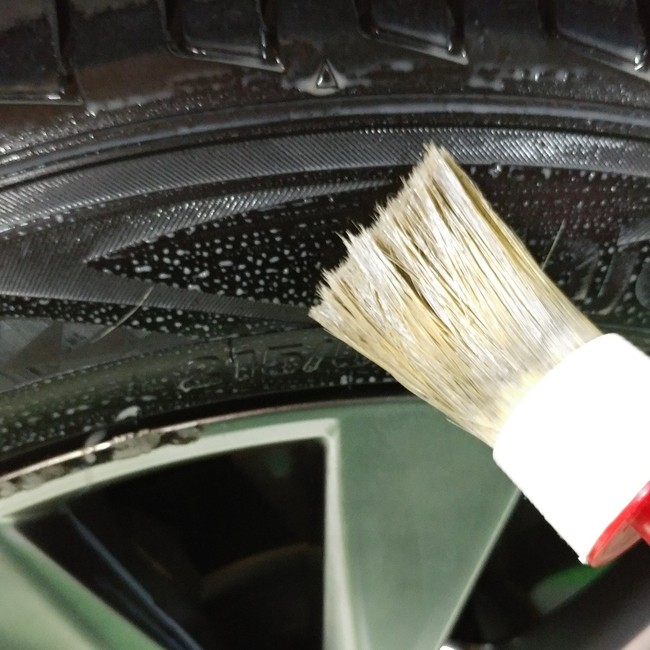 돌리고 돌리고 열심히 바릅니다. 저는 타이어드레싱제를 붓으로 바를 때 만족감이 높습니다.