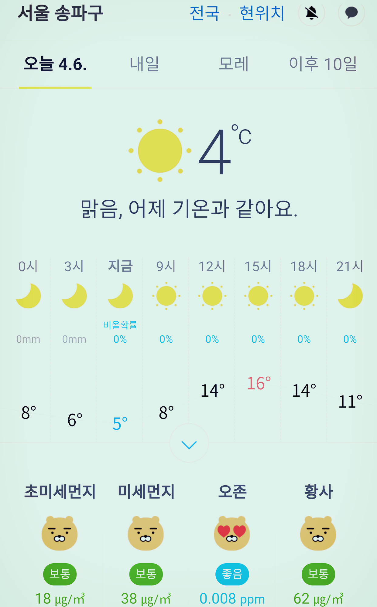 서울 강남 송파구 오늘의 날씨 2020년 4월 6일 (07시 현재)