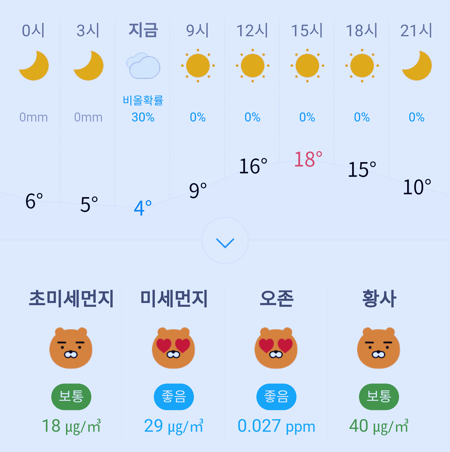 최저기온 4도, 최고기온 18도