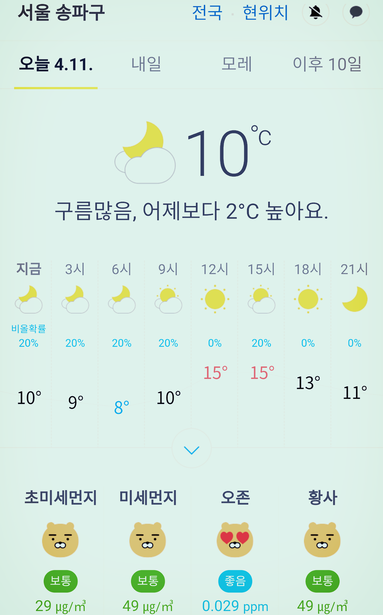 서울 강남 송파구 오늘의 날씨 2020년 4월 11일 (00시30 현재)