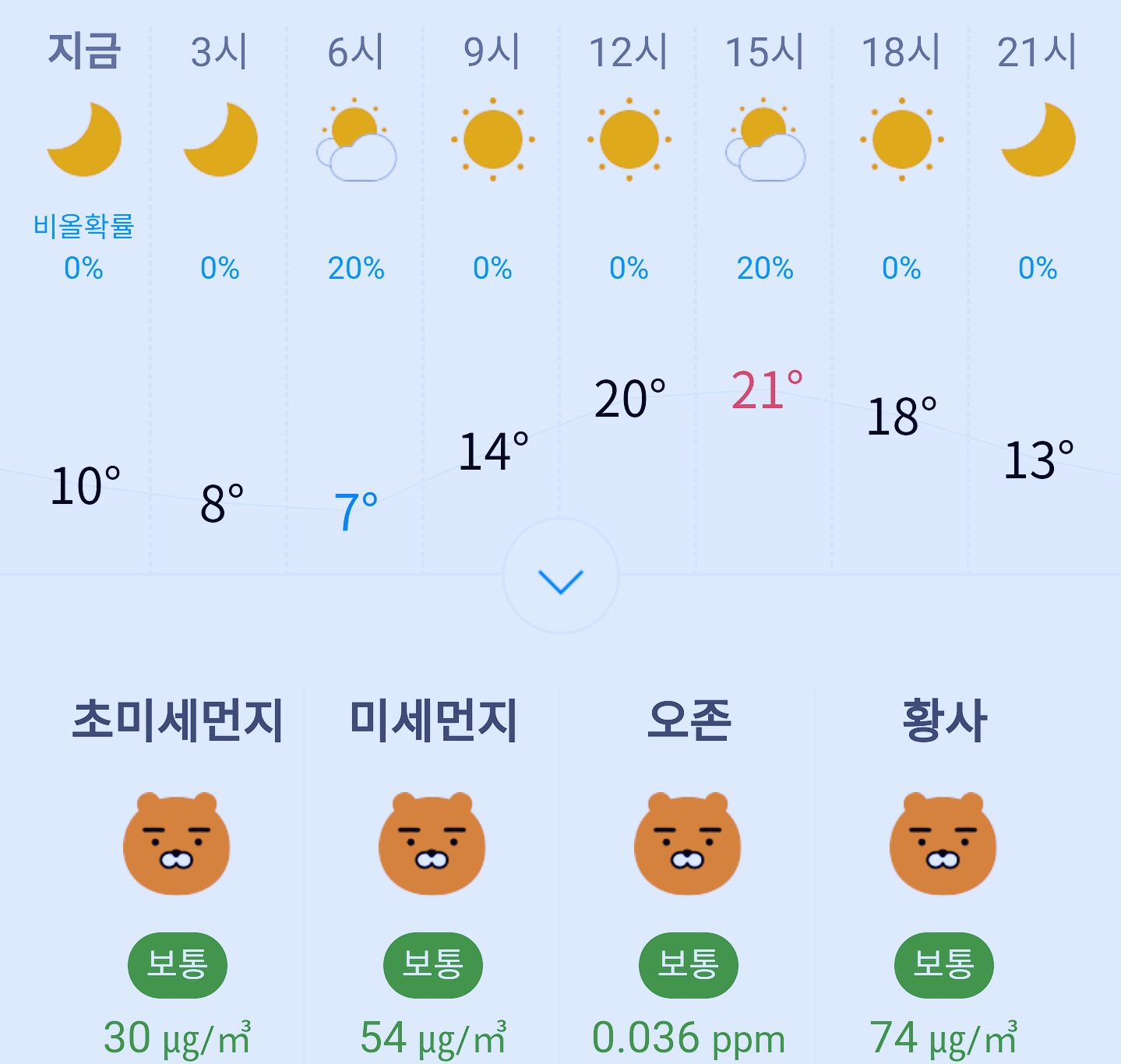 최저기온 7도, 최고기온 21도