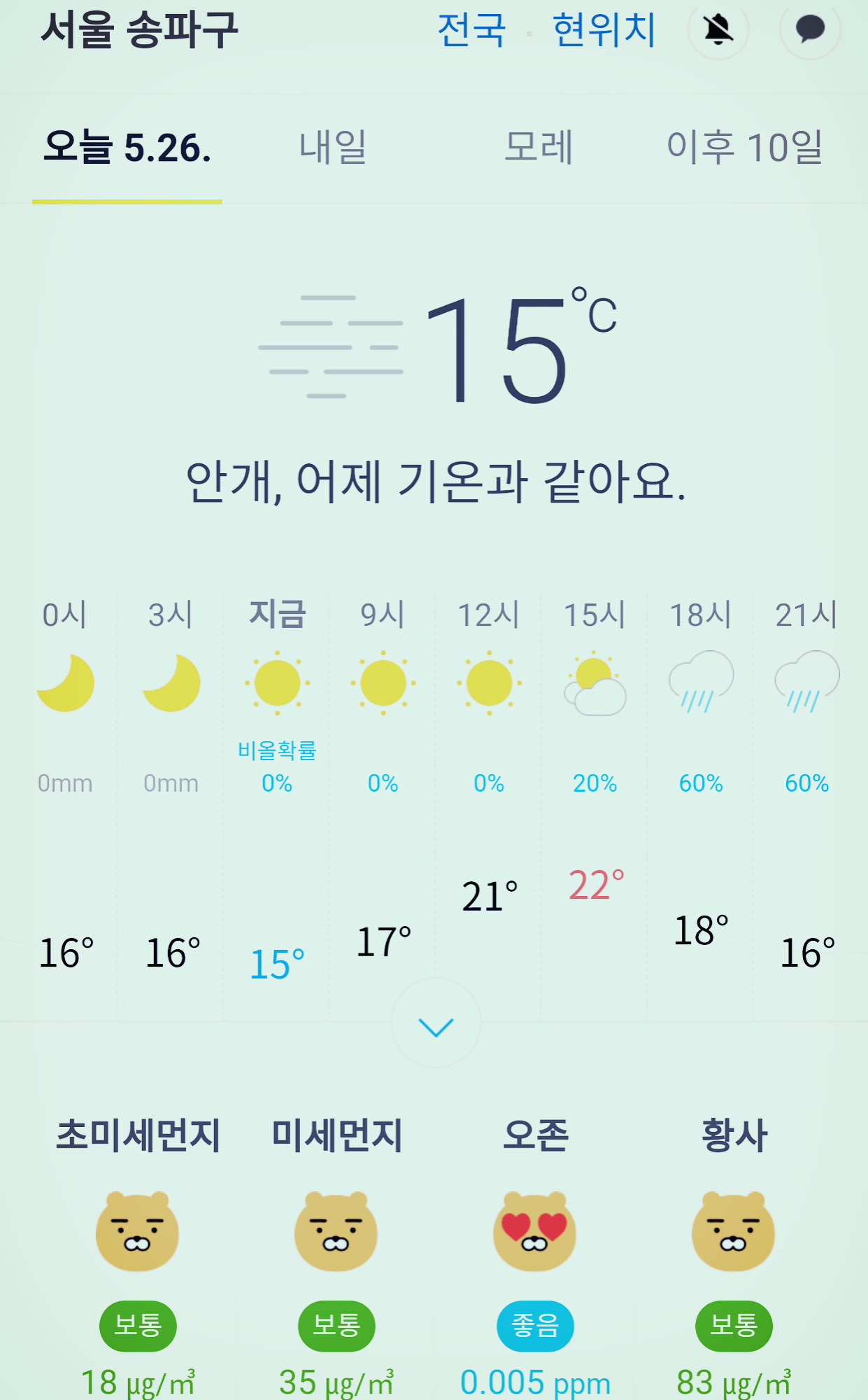 서울 강남 송파구 오늘의 날씨 2020년 5월 26일 (07시 현재)