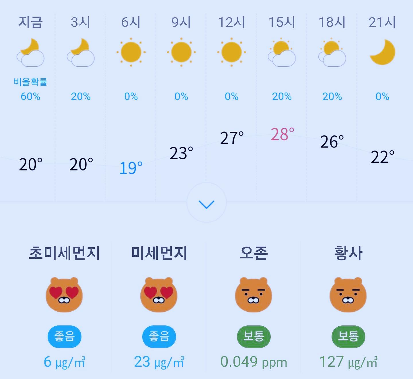 최저기온 20도, 최고기온 27도