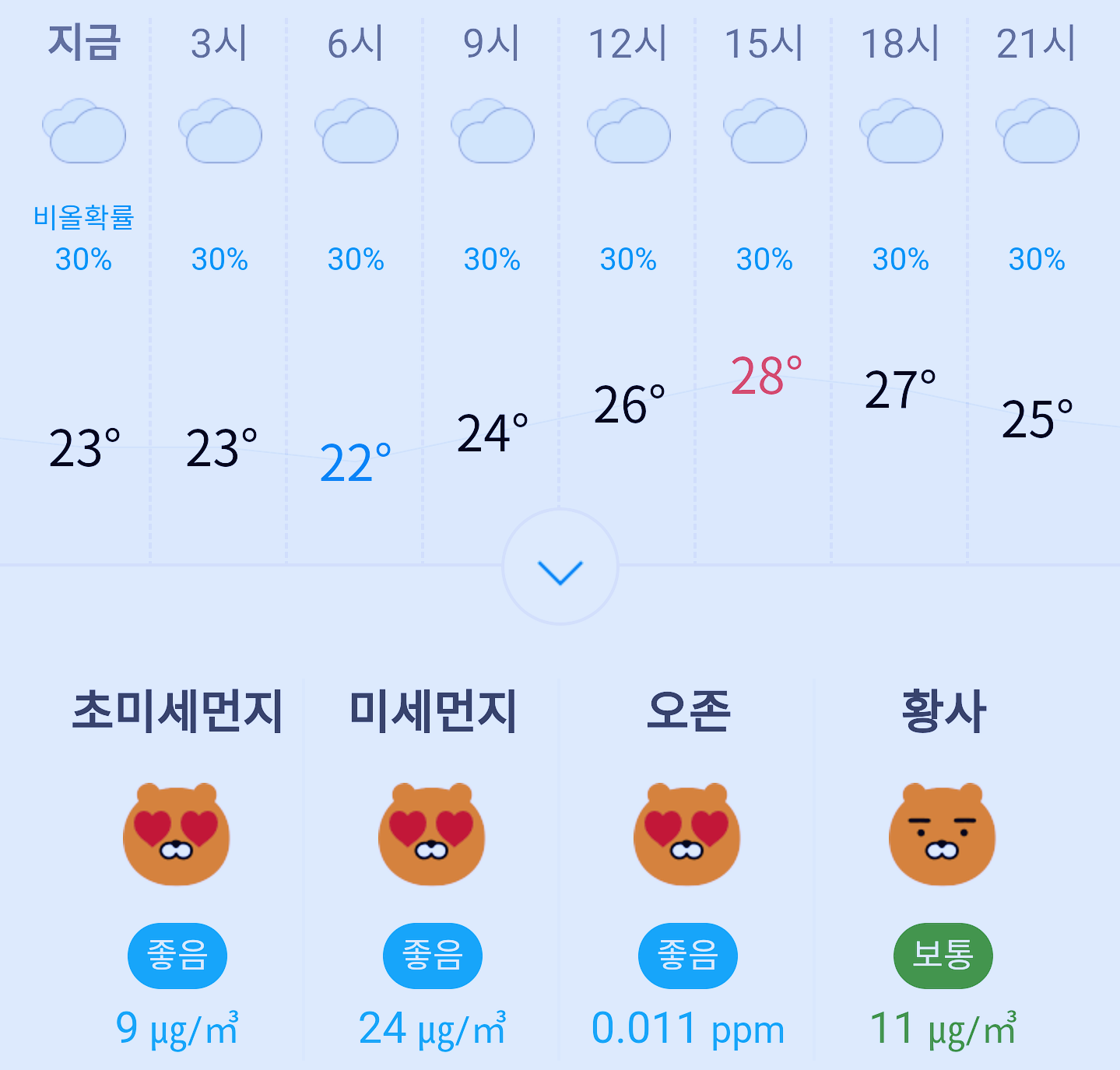 최저기온 23도, 최고기온 28도