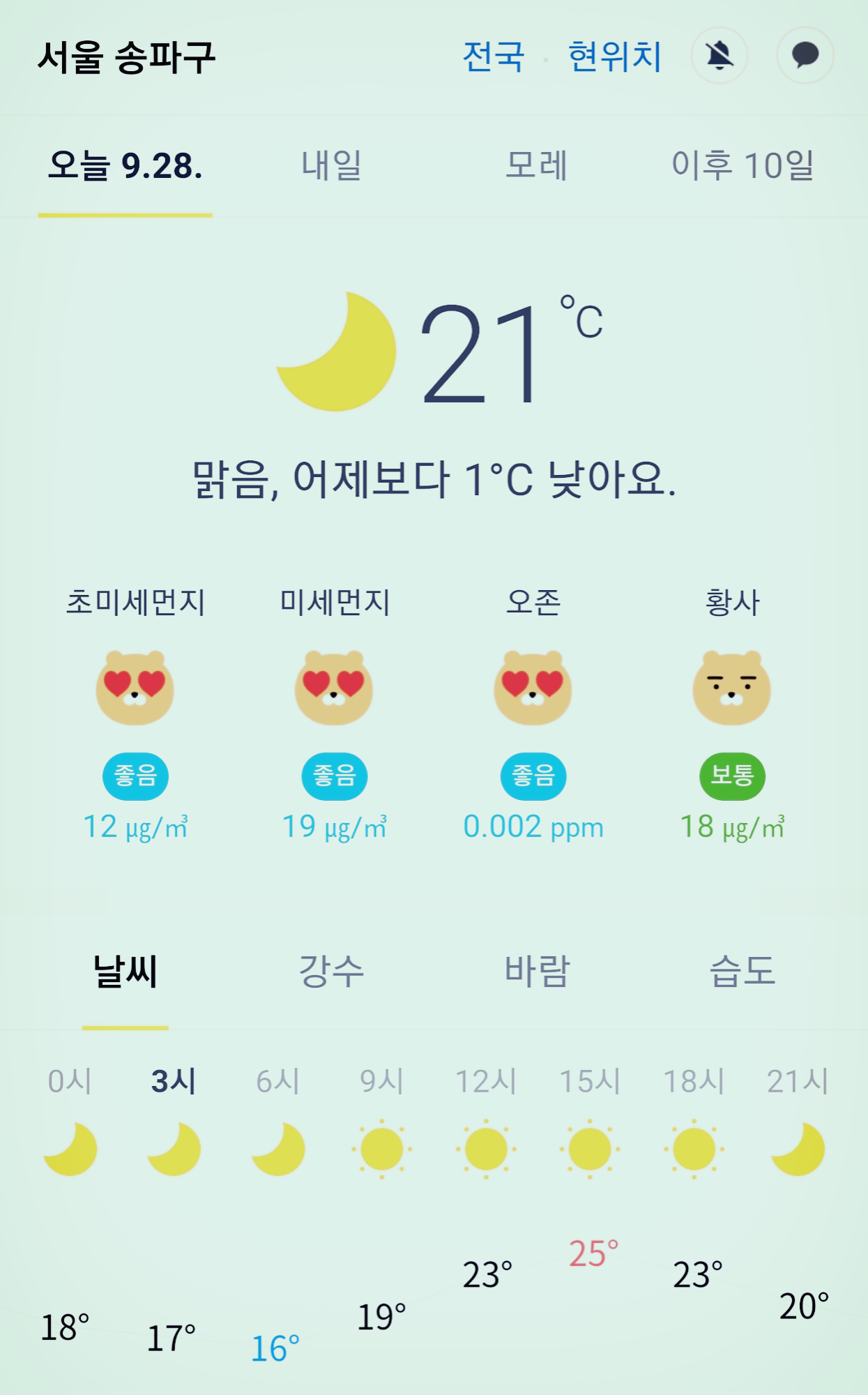 서울 강남 송파구 오늘의 날씨 2020년 9월 28일 (4시 현재)