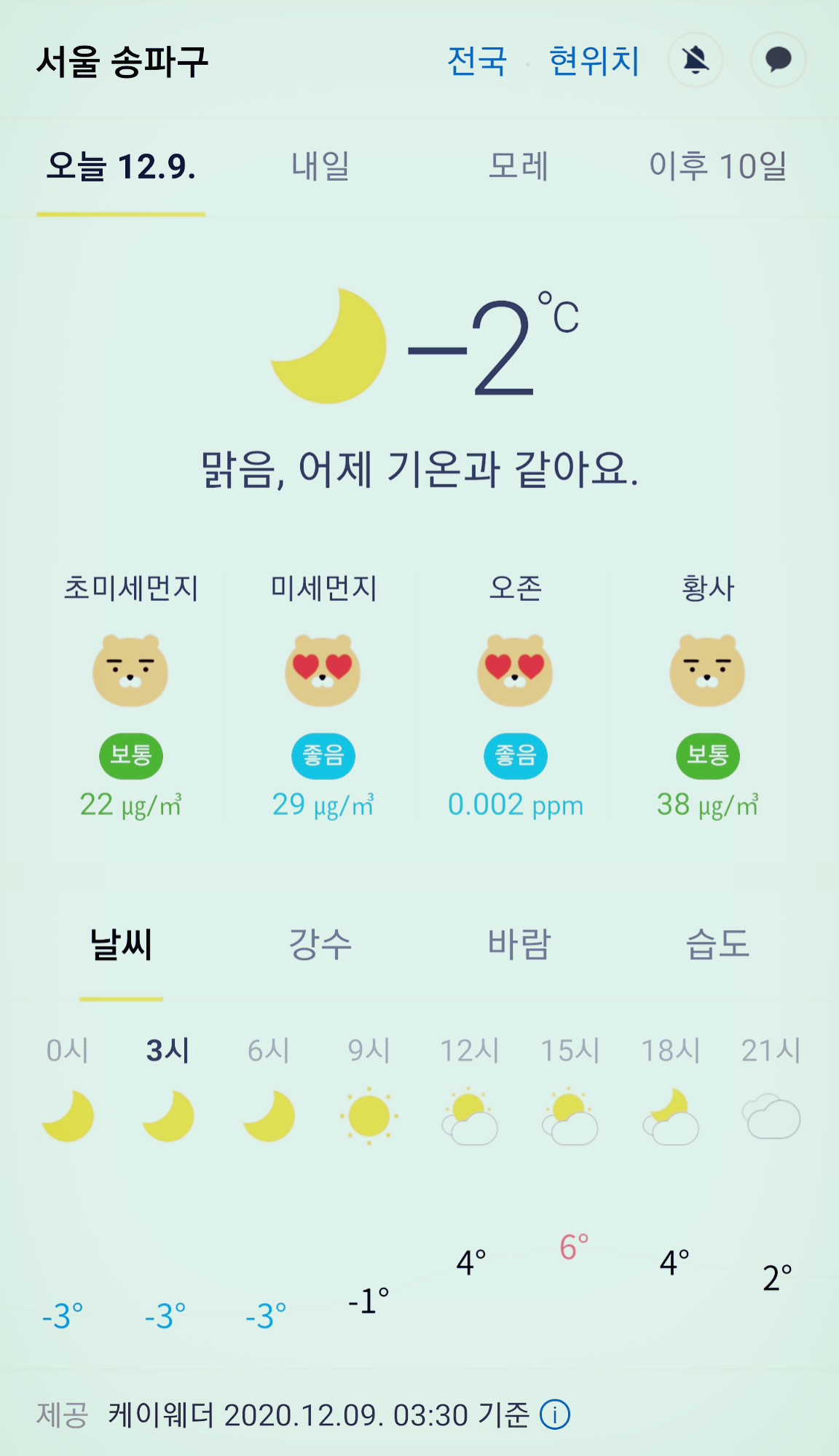 서울 강남 송파구 오늘의 날씨 2020년 12월 9일 (3시 30분 현재)