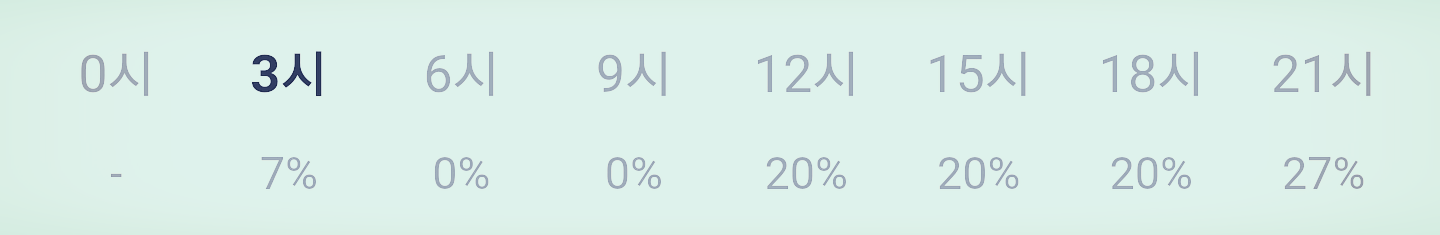 비 올 확률은 종일 30 퍼센트 내에서 오르내립니다 아침 6시 무렵 그리고 9시 무렵 0 퍼센트이고 밤 9시 무렵 30 퍼센트 가깝습니다