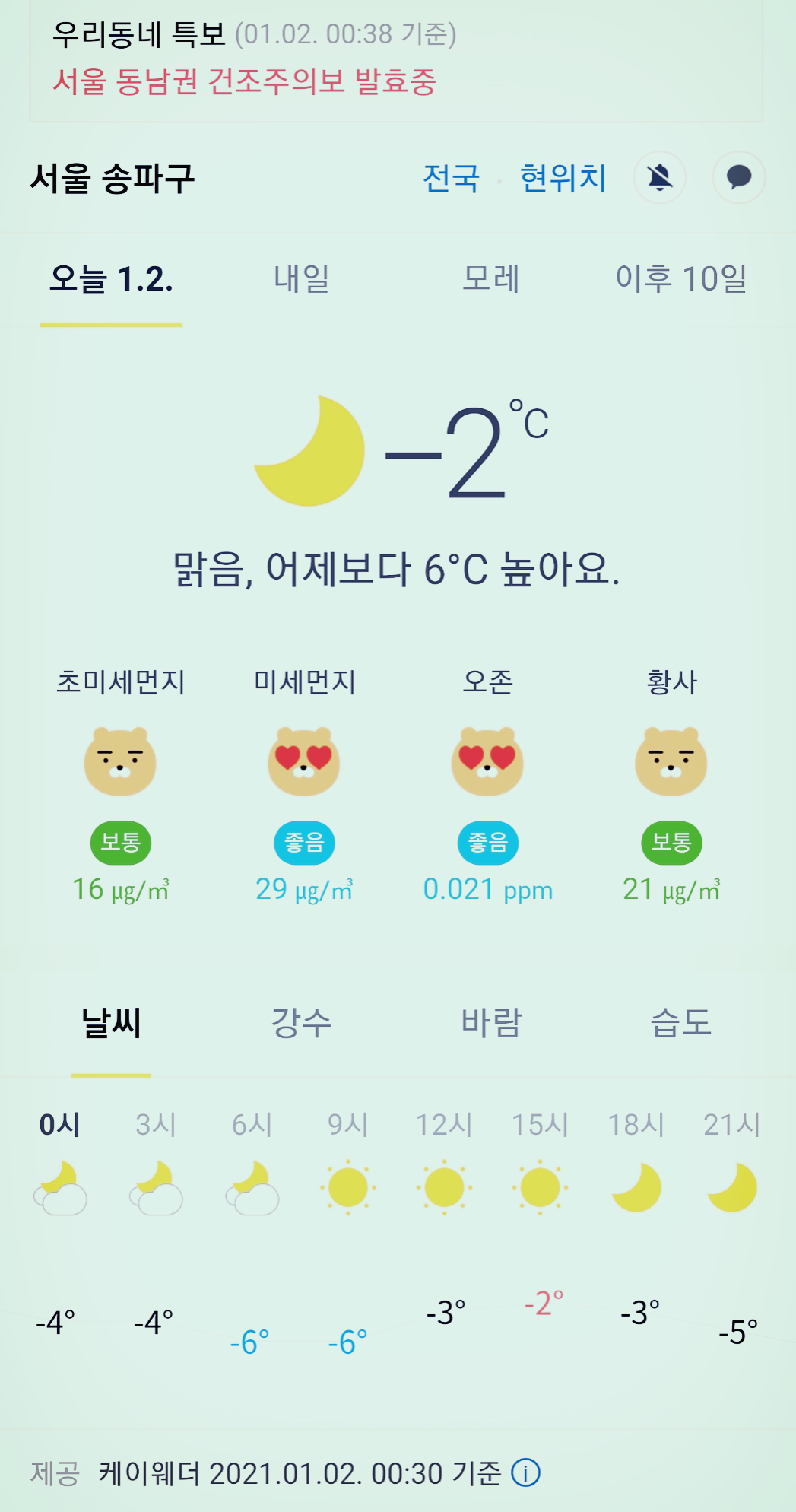 >>>서울 강남 송파구 날씨 2021년 1월 2일. 서울 강남구 오늘의 날씨, 건조주의보 발효중, 오늘 날씨, 2021 0102, 초미세먼지, 미세먼지