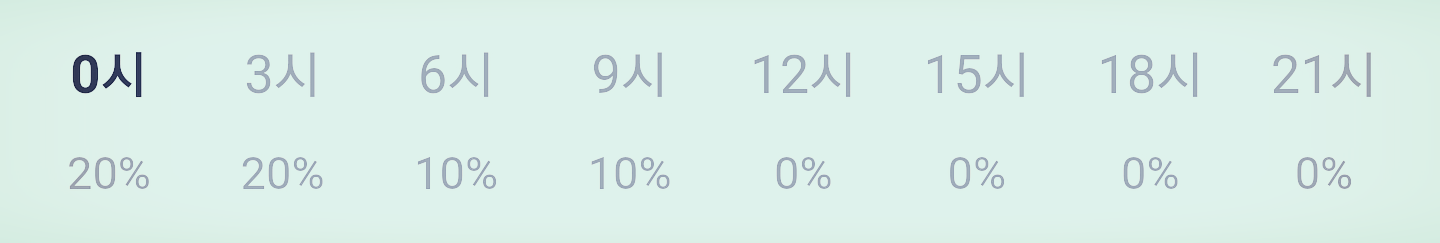 눈 또는 비 올 확률은 아래 표와 같습니다