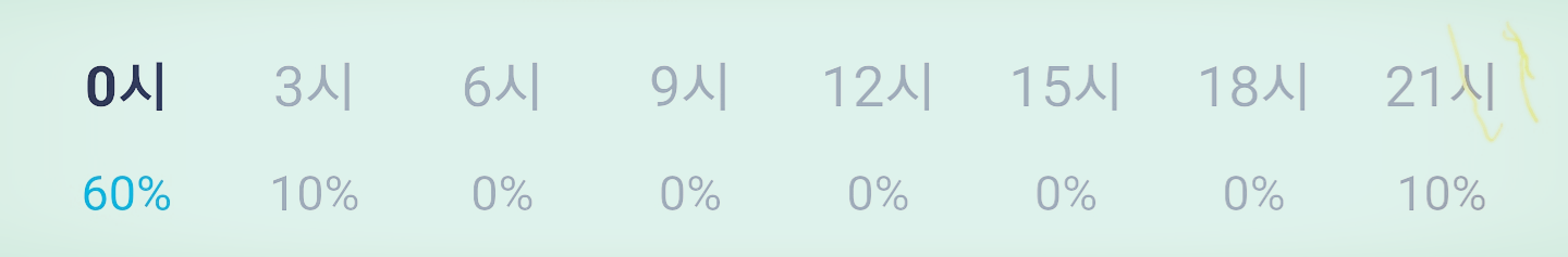 눈 또는 비 올 확률은 아래 표와 같습니다 어제 저녁부터 내린 기습 폭설은 자정 무렵 그친 모양입니다