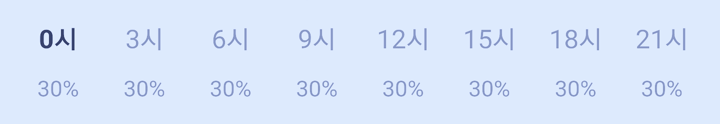눈 또는 비 올 확률은 아래 표와 같습니다 비 올 확률 종일 30 퍼센트입니다