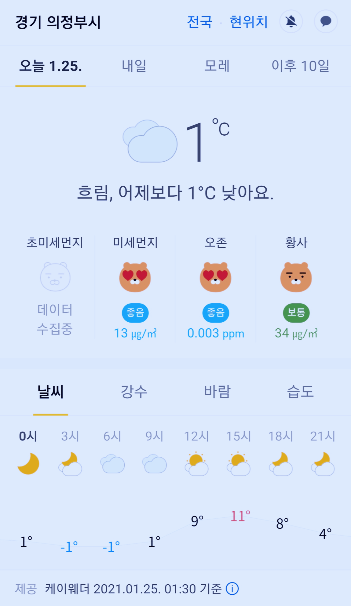 >>>경기도 의정부시 날씨 2021년 1월 25일. 오늘의 날씨, 오늘 날씨, 2021 0125, 초미세먼지, 미세먼지