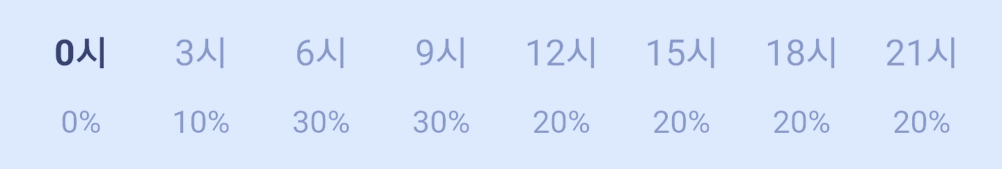 눈 또는 비 올 확률은 아래 표와 같습니다 종일 10-30 퍼센트를 오르내립니다