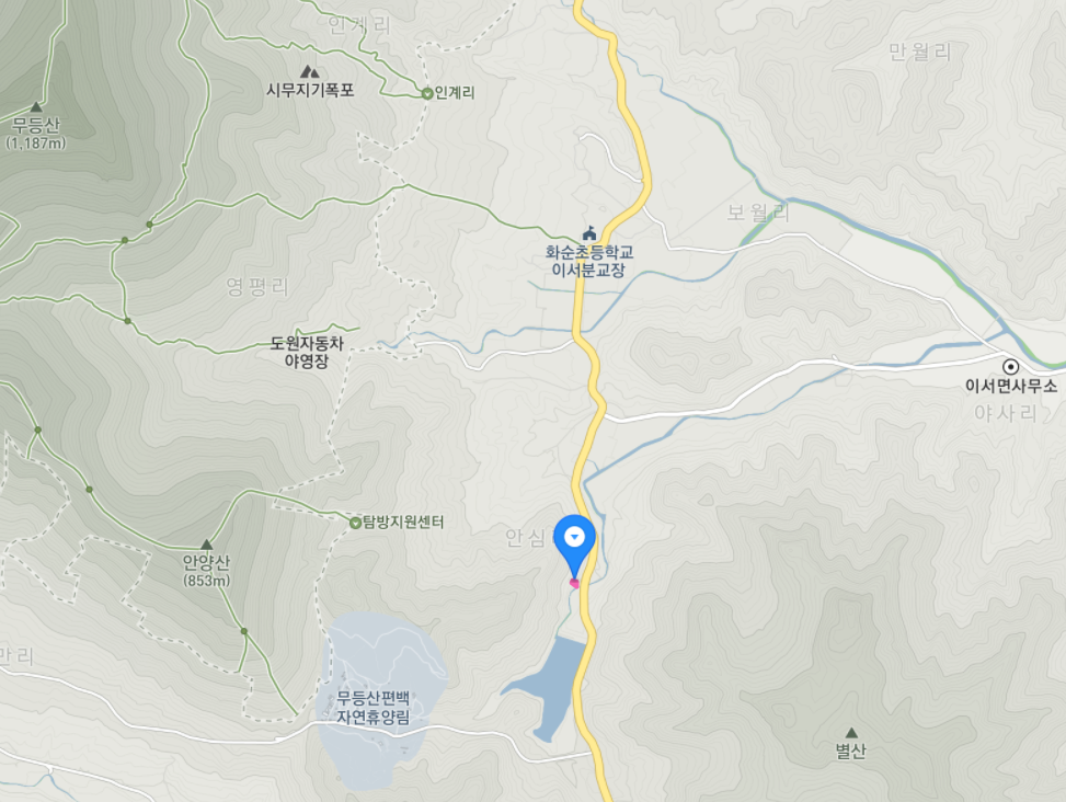 아래 지도에서 표시된 곳이 화순군 이서면 안심리입니다.
