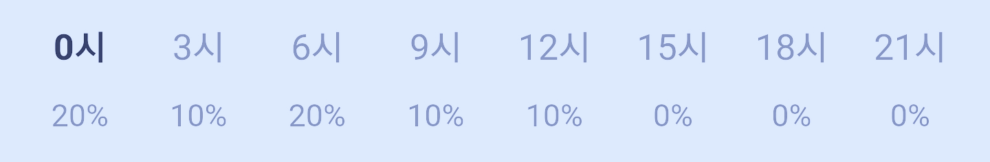 눈 또는 비 올 확률은 아래 표와 같습니다