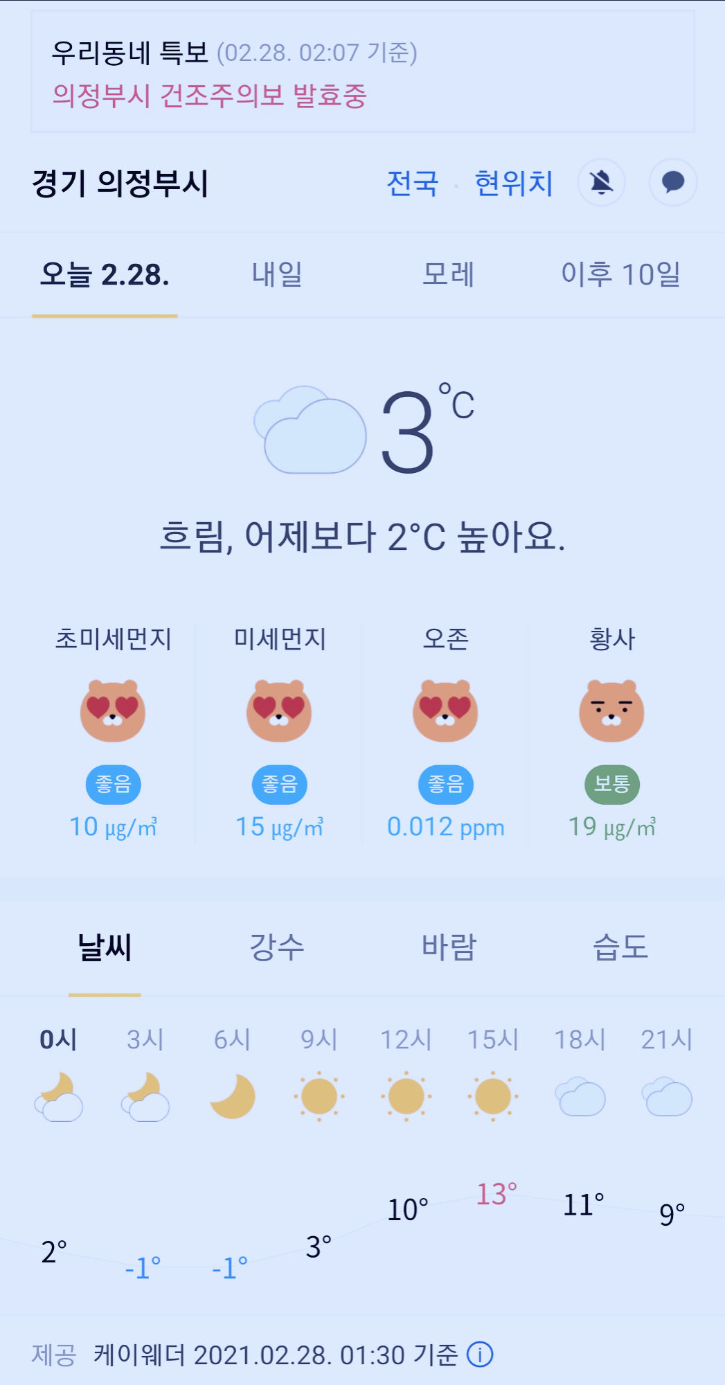 >>>경기도 의정부시 날씨 2021년 2월 28일. 오늘의 날씨, 건조주의보 발효중, 오늘 날씨, 2021 0228, 초미세먼지, 미세먼지