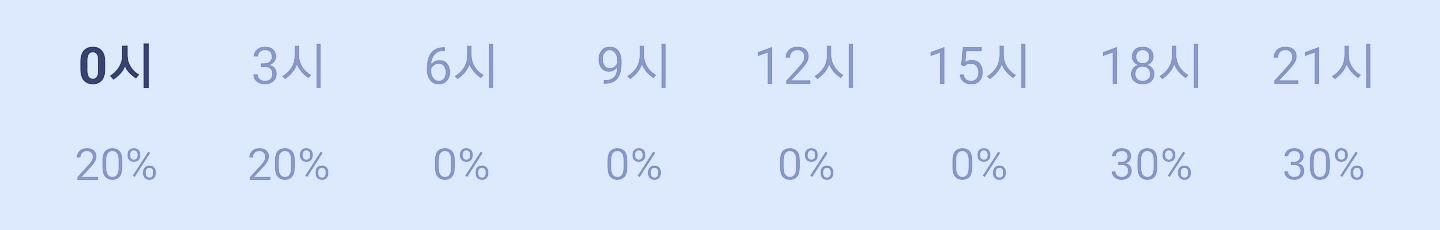 눈 또는 비 올 확률은 아래 표와 같습니다 종일 0 퍼센트입니다