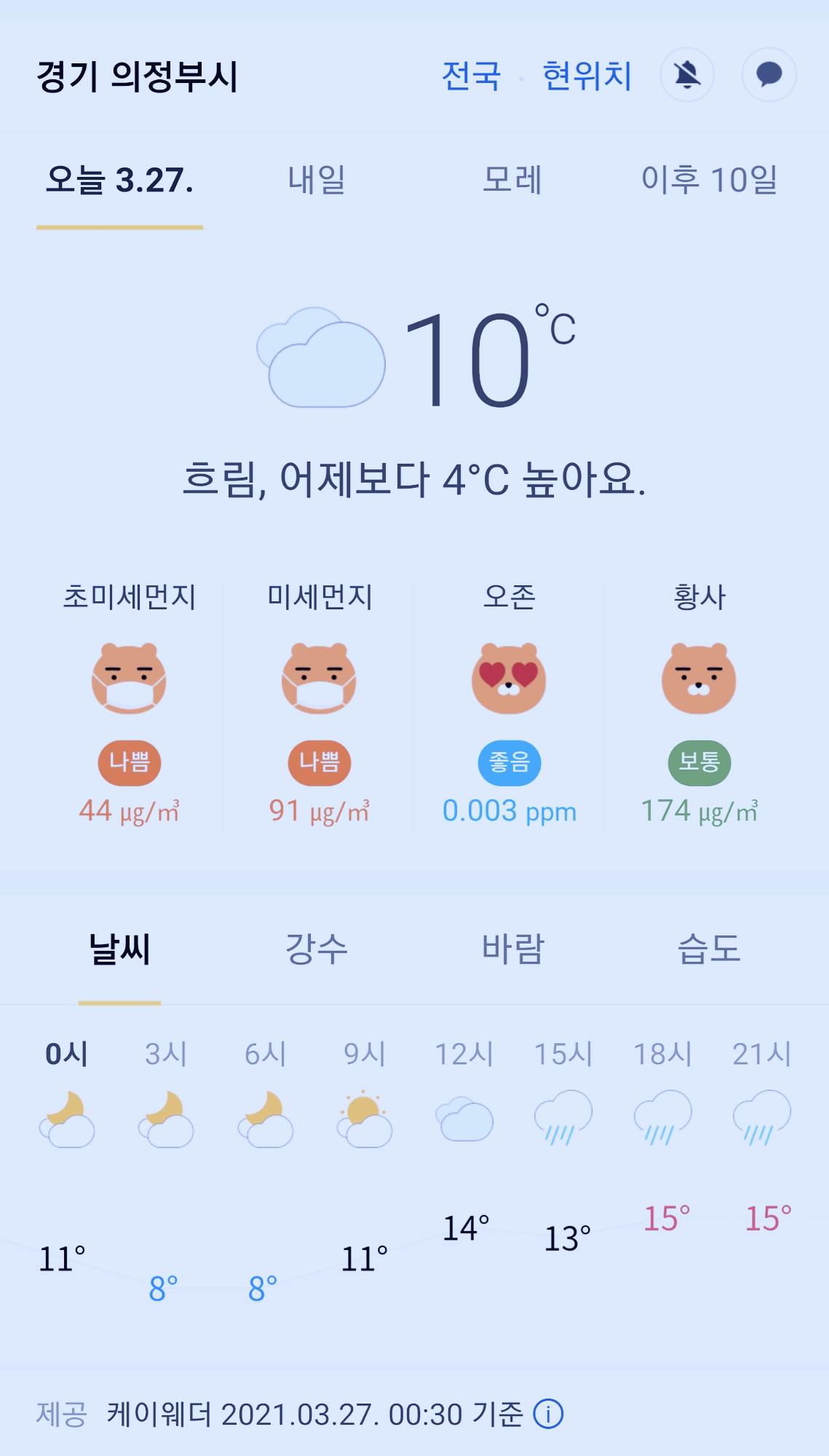 경기도 의정부시 오늘의 날씨 2021년 3월 27일 (0시 30분 현재)