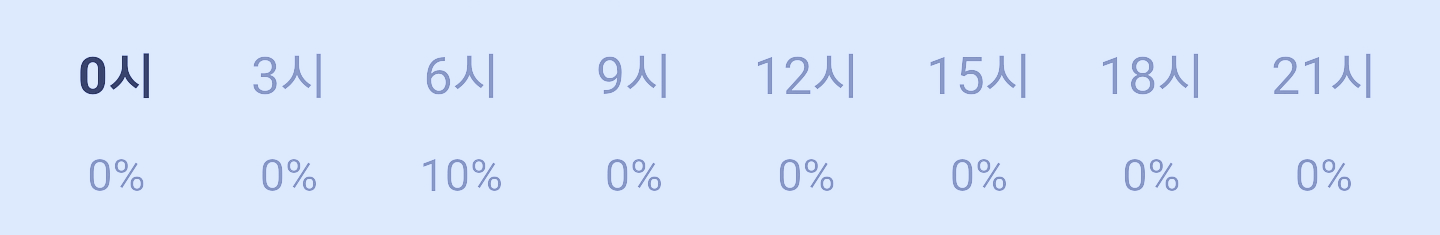 오늘 눈 또는 비 올 확률은 아래 표와 같습니다 종일 맑겠네요