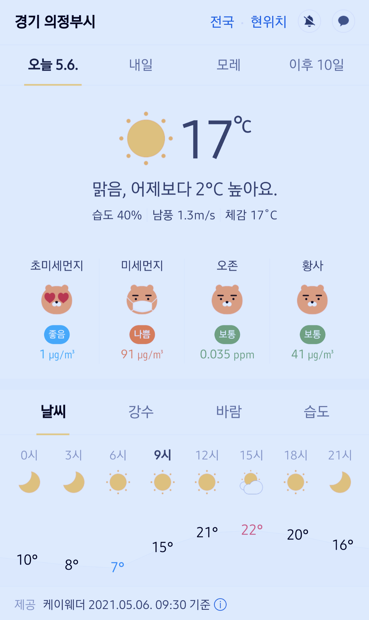 >>>경기도 의정부시 날씨 2021년 5월 6일. 오늘의 날씨, 오늘 날씨, 2021 0506, 초미세먼지, 미세먼지, 황사