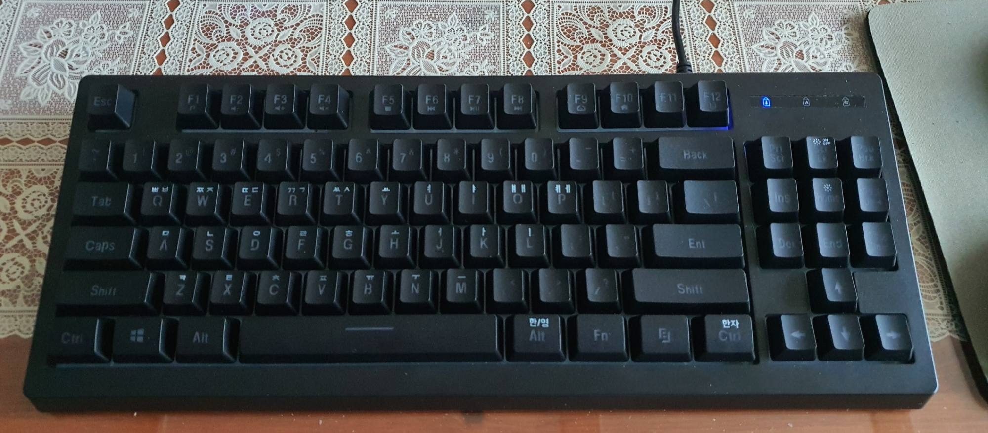 구입해서 사용한지 이제 두 달 조금 더 되었습니다. 이 글도 위 텐키리스 키보드로 작성합니다. 소리도, 키감도, 자판배치도, 저로서는 다 괜찮습니다. LED 백라이트도 익숙해졌고요. 백라이트를 끌 수도 있는데 켜 두고 사용합니다. 그게 더 좋네요.