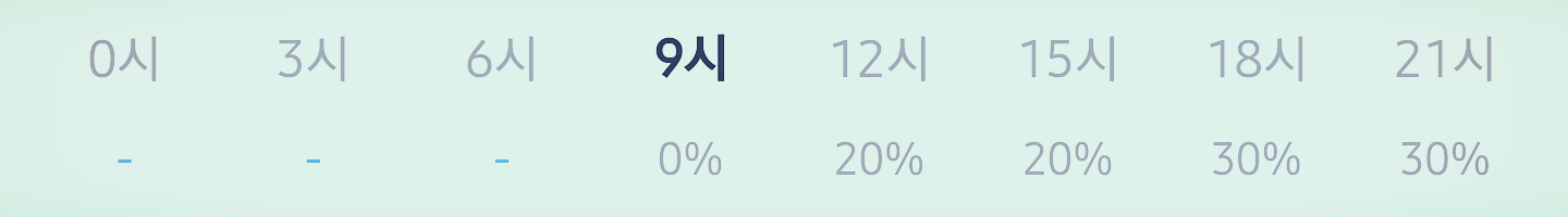 오늘 비 올 확률은 아래 표와 같습니다