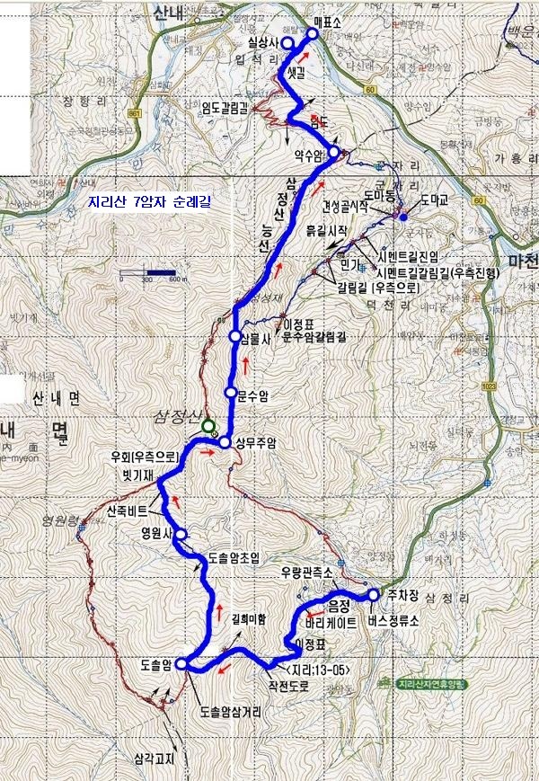 * 지리산 7암자 순례길 각 사찰과 암자의 주소