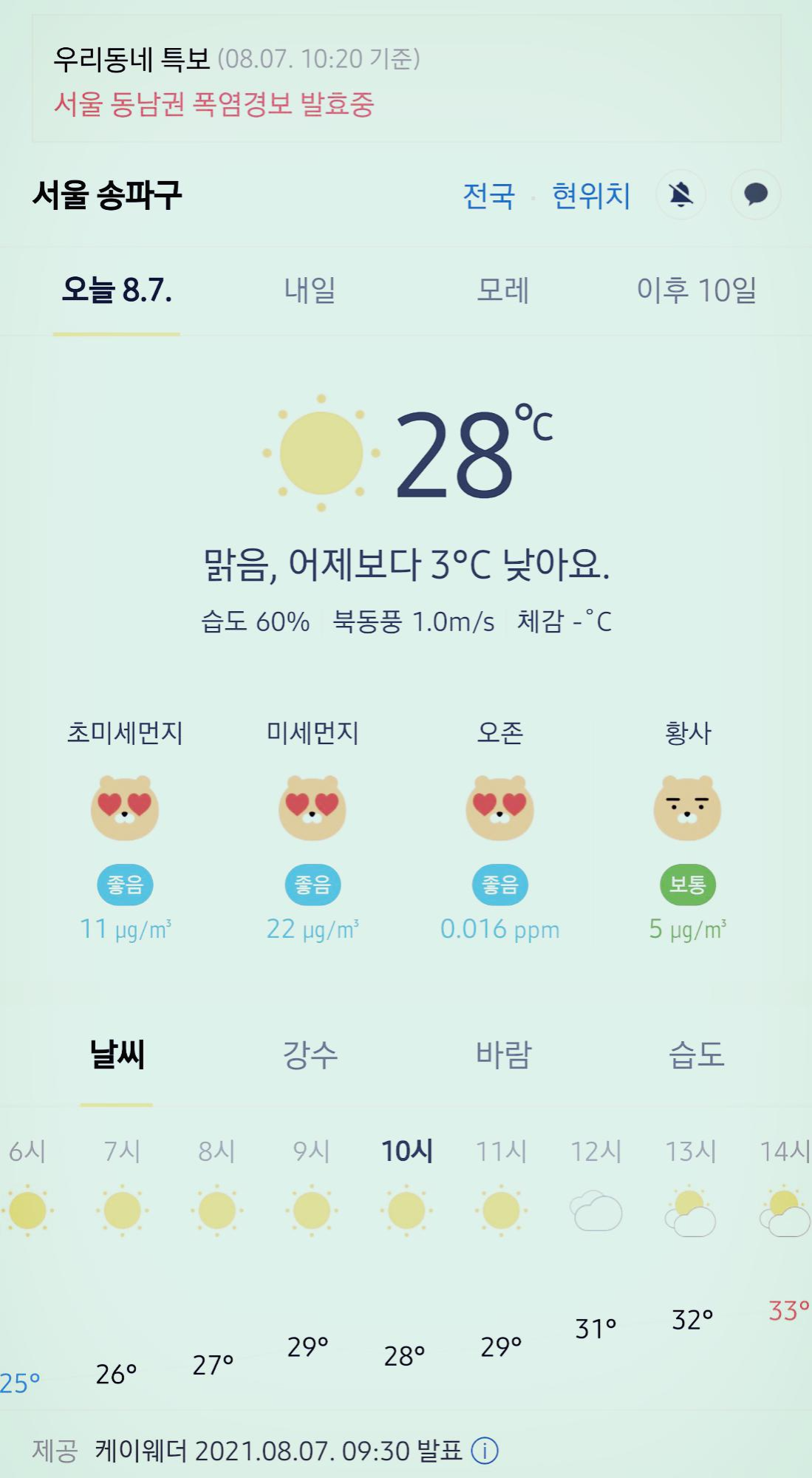 >>>서울 강남 송파구 날씨 2021년 8월 7일. 서울 강남구 오늘의 날씨, 폭염경보 발효중, 오늘 날씨, 2021 0807, 초미세먼지, 미세먼지, 황사, 자외선