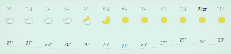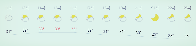 * 비 올 확률은 위 이미지에서 시간별 기상 상태 참조