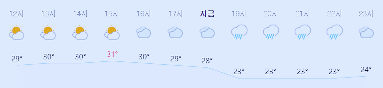 최저기온 21도(오전), 최고기온 31도(낮)