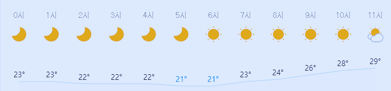* 비 올 확률은 위 이미지에서 시간별 기상 상태 참조