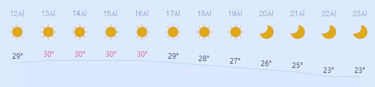 최저기온 20도(오전), 최고기온 30도(낮)