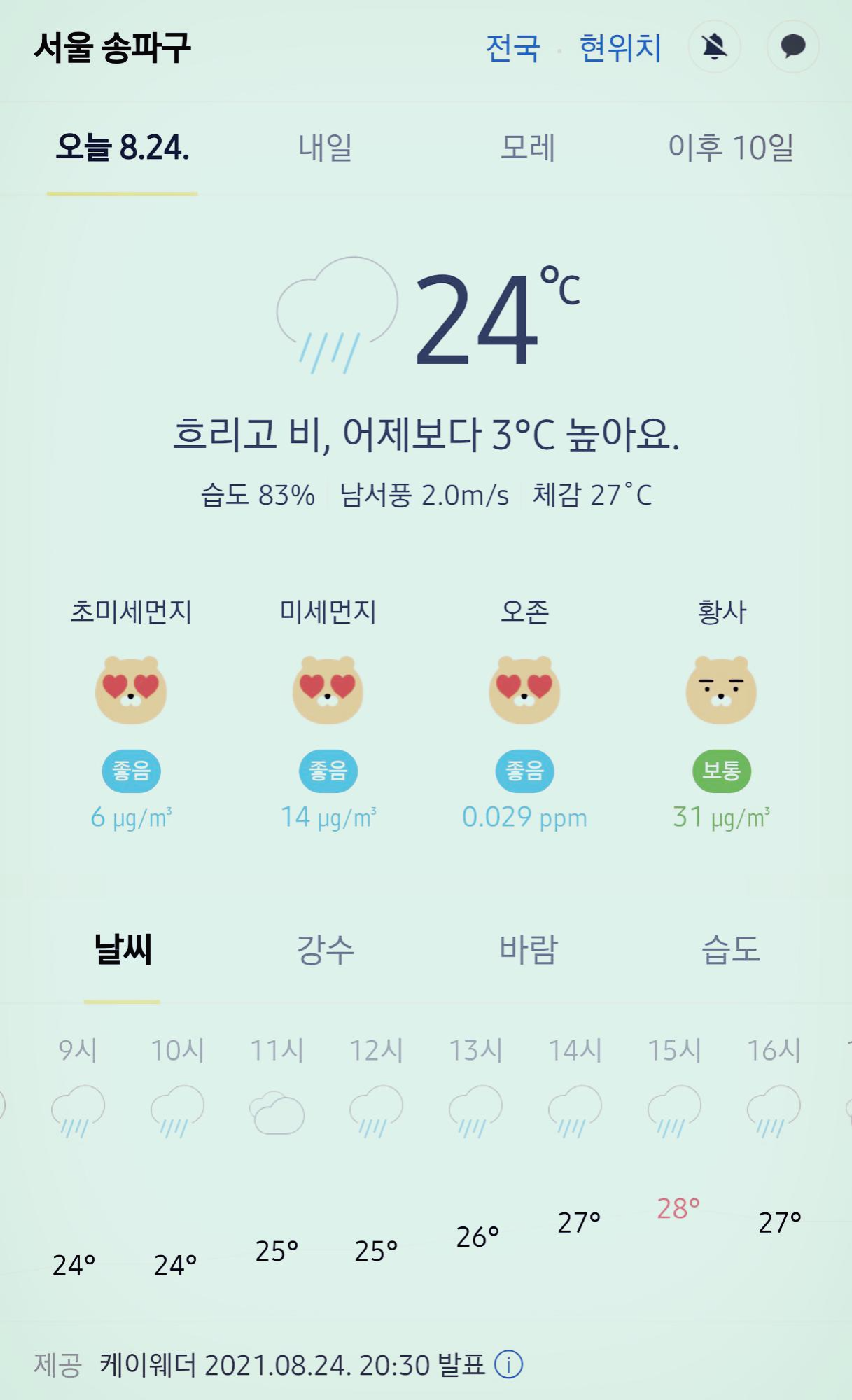 >>>서울 강남 송파구 날씨 2021년 8월 24일. 서울 강남구 오늘의 날씨, 오늘 날씨, 2021 0824, 초미세먼지, 미세먼지, 황사, 자외선