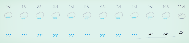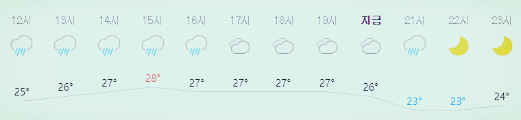 최저기온 23도(오전, 밤), 최고기온 28도(낮)