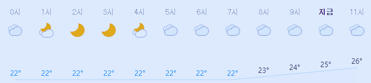 최저기온 22도(오전), 최고기온 27도(낮)