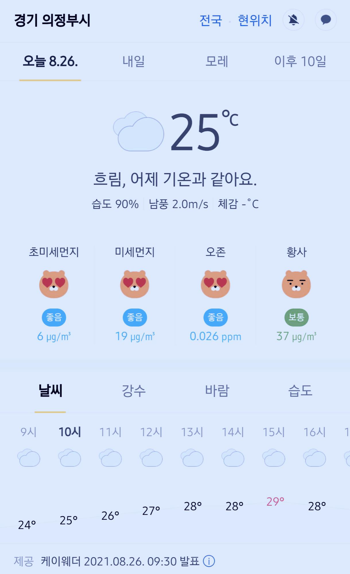 >>>경기도 의정부시 날씨 2021년 8월 26일. 오늘의 날씨, 오늘 날씨, 2021 0826, 초미세먼지, 미세먼지, 황사, 자외선
