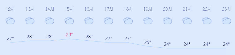 최저기온 22도(오전), 최고기온 29도(낮)