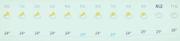 최저기온 24도(오전), 최고기온 27도(아침, 낮)