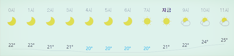 * 비 올 확률은 위 이미지에서 시간별 기상 상태 참조