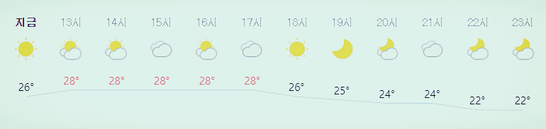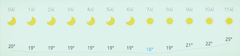 * 비 올 확률은 위 이미지에서 시간별 기상 상태 참조