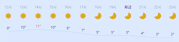 최저기온 3도(심야), 최고기온 16도(새벽)