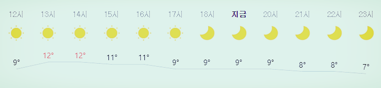 * 비 올 확률은 위 이미지에서 시간별 기상 상태 참조