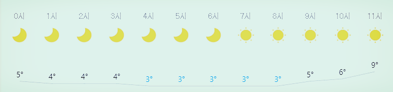 최저기온 5도(심야), 최고기온 18도(새벽)