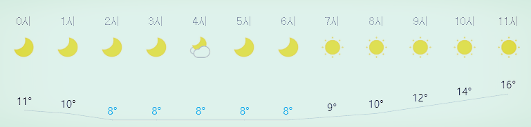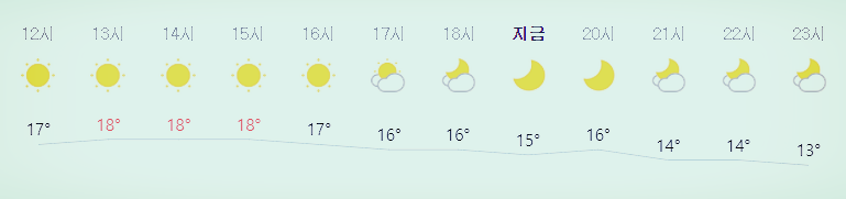 * 비 올 확률은 위 이미지에서 시간별 기상 상태 참조