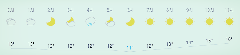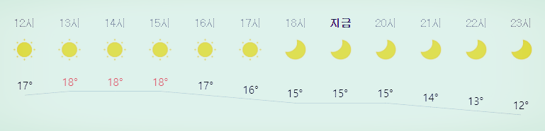 * 비 올 확률은 위 이미지에서 시간별 기상 상태 참조