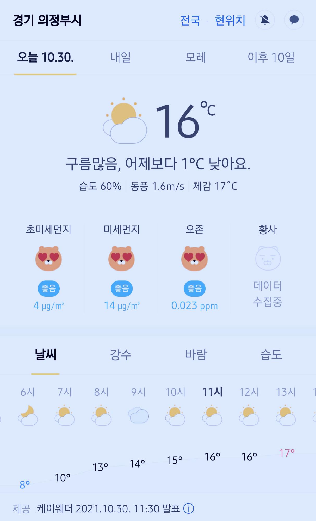 >>>경기도 의정부시 날씨 2021년 10월 30일. 오늘의 날씨, 오늘 날씨, 2021 1030, 초미세먼지, 미세먼지, 황사, 자외선