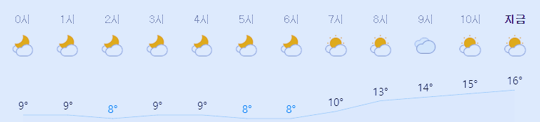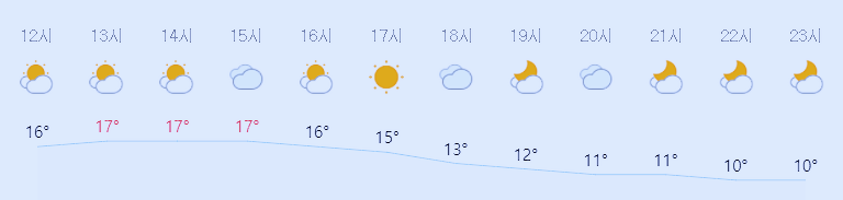 * 비 올 확률은 위 이미지에서 시간별 기상 상태 참조
