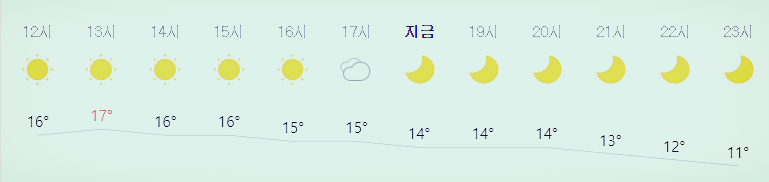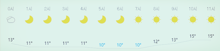 * 비 올 확률은 위 이미지에서 시간별 기상 상태 참조